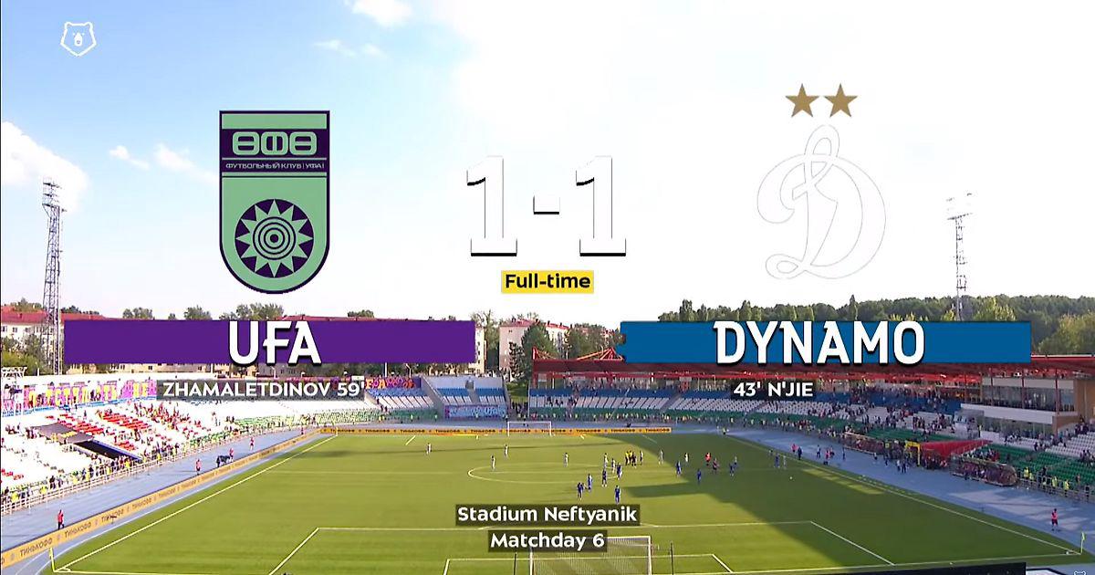 Уфа ответила на 40 минуте после того, как Евгеньев и Комличенко небрежно разыграли ввод мяча из-за боковой линии. При этом уфимцы провели современную динамовскую контратаку – прессинг на Комличенко – его ошибка в передаче – перехват – пас одно касание – ещё пас в одно касание – пас на ход нападающему – Ордец надёжно играет в обороне.