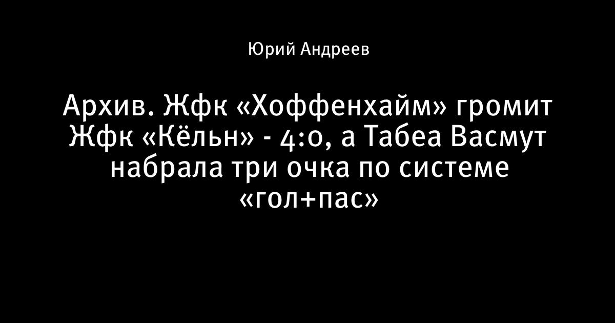 Архив. Жфк «Хоффенхайм» громит Жфк «Кёльн» - 4:0, а Табеа Васмут набрала три очка по системе «гол+пас»