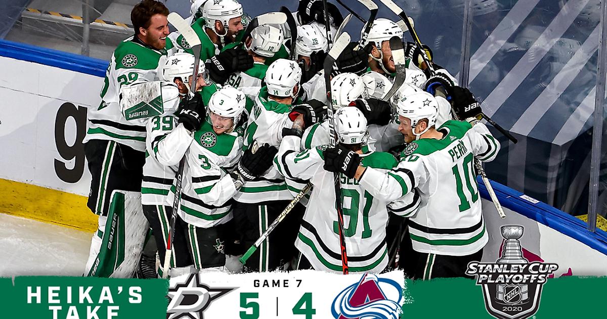 "Колорадо Эвеланш"-"даллас Старз" 4:5 (ОТ).Йоэль Кивиранта в овертайме принёс победу гостям.Йоэль Кивиранта забросил 3 шайбы,Александр Радулов забросил 2 шайбы,Йон Клингберг и Миро Хейсканен отдали по 2 результативные передачи,Антон Худобин отразил 40 бросков.У хозяев Владислав Наместников забросил 2 шайбы,Назим Кадри и Андре Бураковски набрали по 2 очка (1+1),Никита Задоров отдал результативную передачу.!Звёзды" вышли в полуфинал.