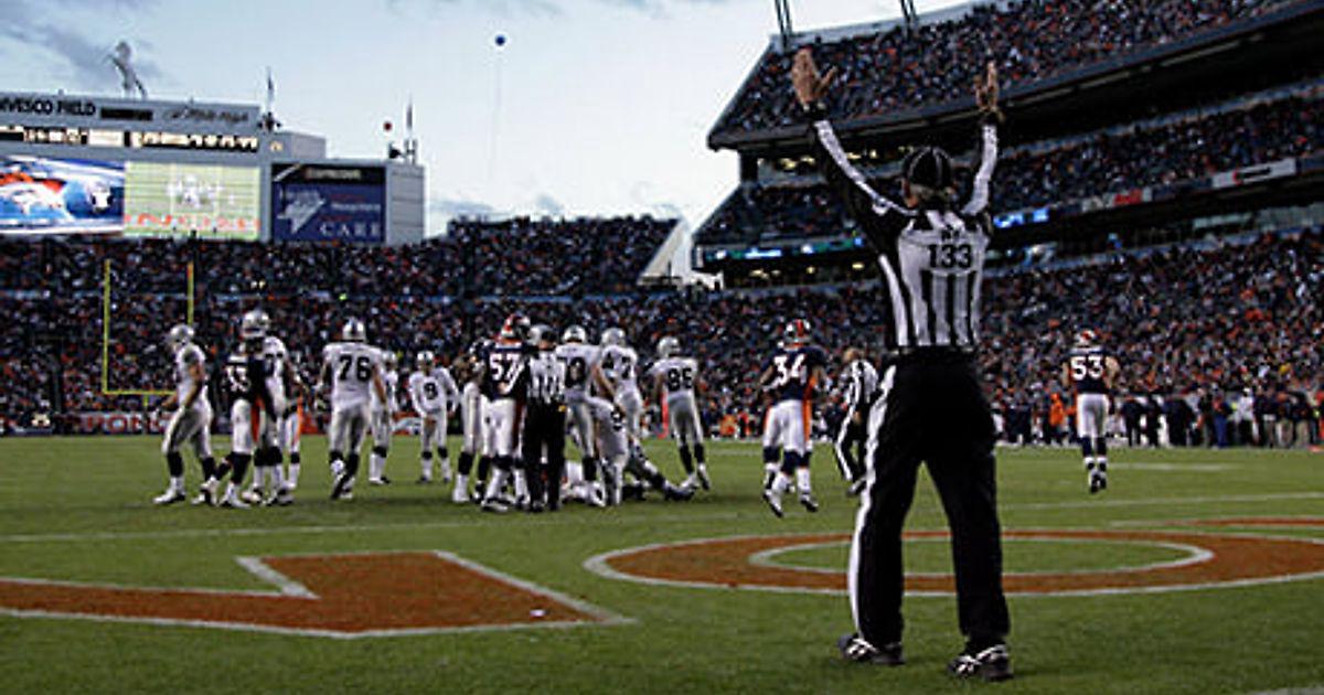 Если арбитр фиксирует нарушение, он выбрасывает на поле желтый флажок. Игра при этом не останавливается. Только когда розыгрыш закончивается, главный судья выходит на центр поля и объявляет, какое нарушение и с чьей стороны (нападения или защиты) зафиксировано. Пострадавшая сторона имеет право отказаться от нарушения, если розыгрыш в итоге принес им больше пользы, чем фол. Например, защита сделала фол на розыгрыше, на котором атака занесла тачдаун. При таком раскладе атака откажется от фиксации фола и попросит засчитать им тачдаун.