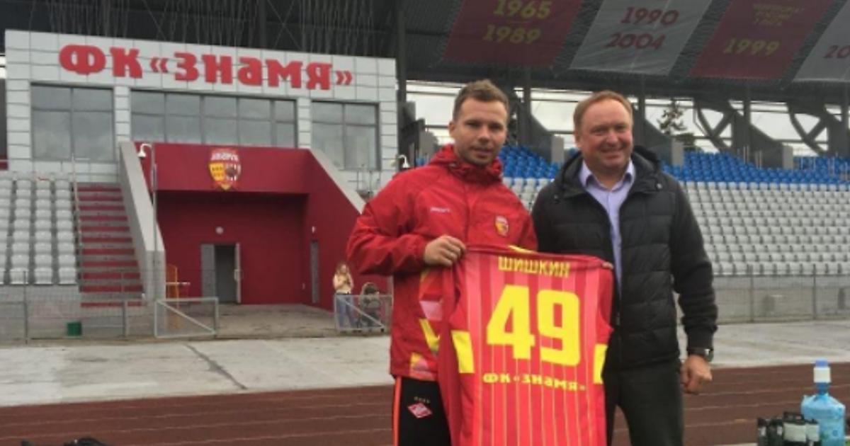 Первую тренировку с составе «Знамя» Шишкин провел в шортах с эмблемой «Спартака», за который выступал с 2004 по 2010 год.