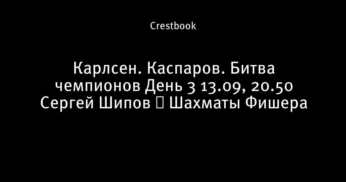 Карлсен. Каспаров. Битва чемпионов 🏆 День 3 ⏰ 13.09, 20.50 🎤 Сергей Шипов ♕ Шахматы Фишера