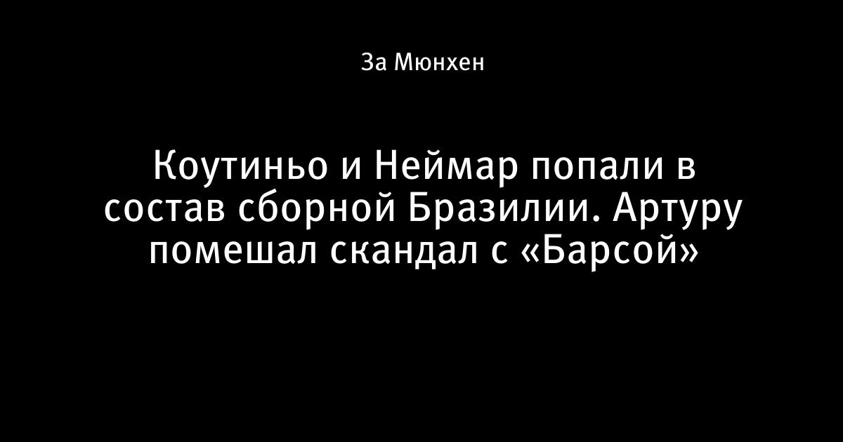 Коутиньо и Неймар попали в состав сборной Бразилии. Артуру помешал скандал с «Барсой»