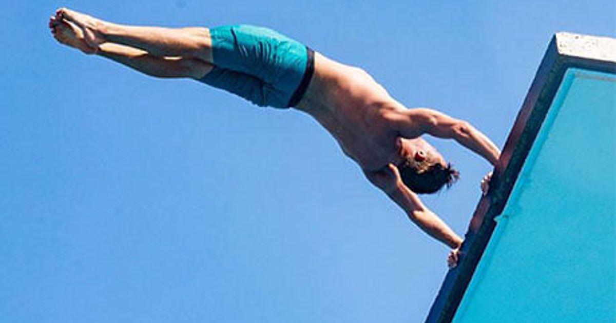Космический трюк от прыгунов в воду – сальто назад с двумя девушками (на груди и на спине)! Есть и другие чудеса