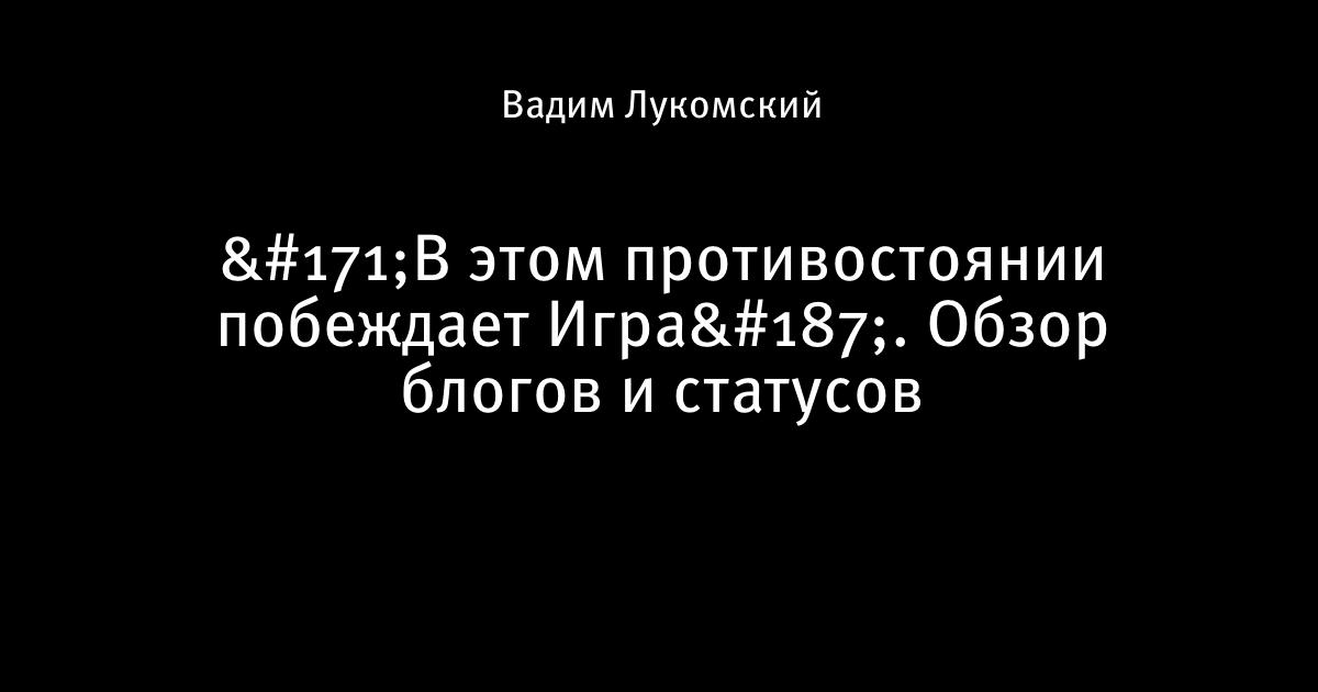 «В этом противостоянии побеждает Игра». Обзор блогов и статусов