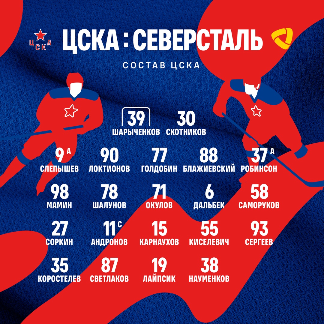 Представляем состав ЦСКА на сегодняшний матч с Северсталью