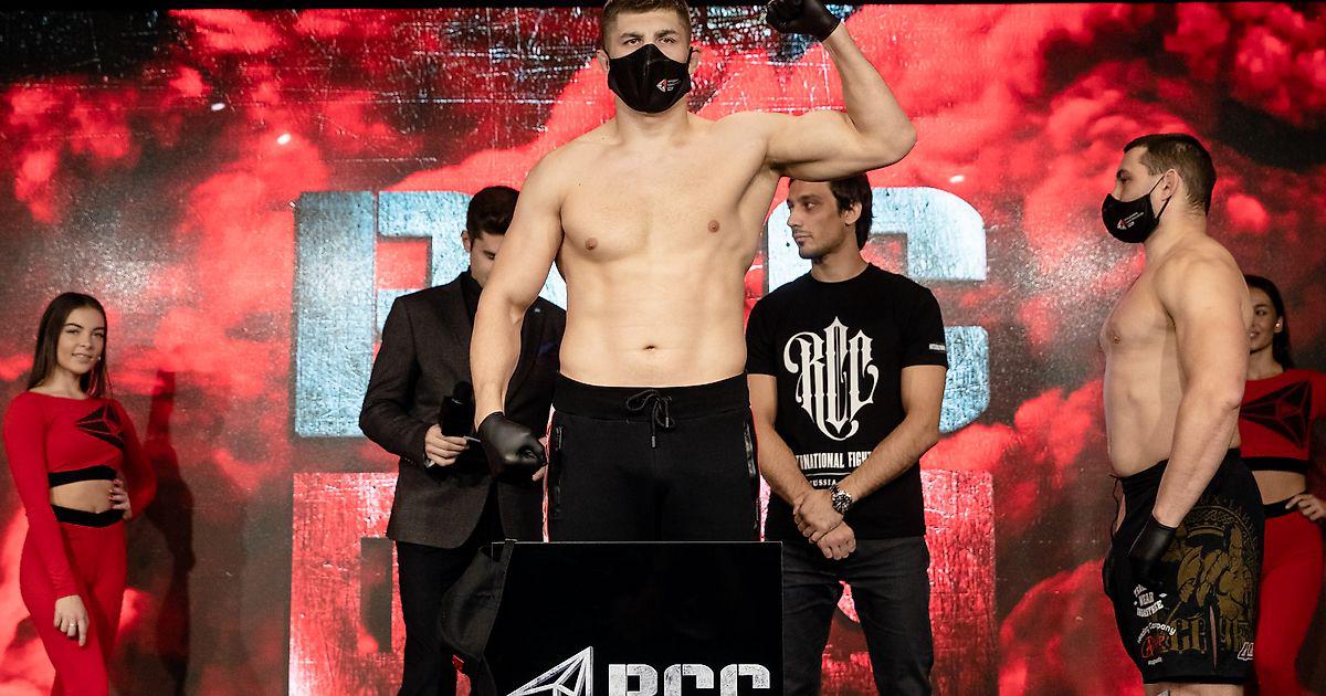 Завтра в главном поединке турнира RCC: Intro встретятся Михаил Рагозин и Дмитрий Тебекин. Бойцы только что встретились лицом к лицу и прошли взвешивание — Рагозин оказался легче соперника на 250 грамм и показал вес 93,15 кг.