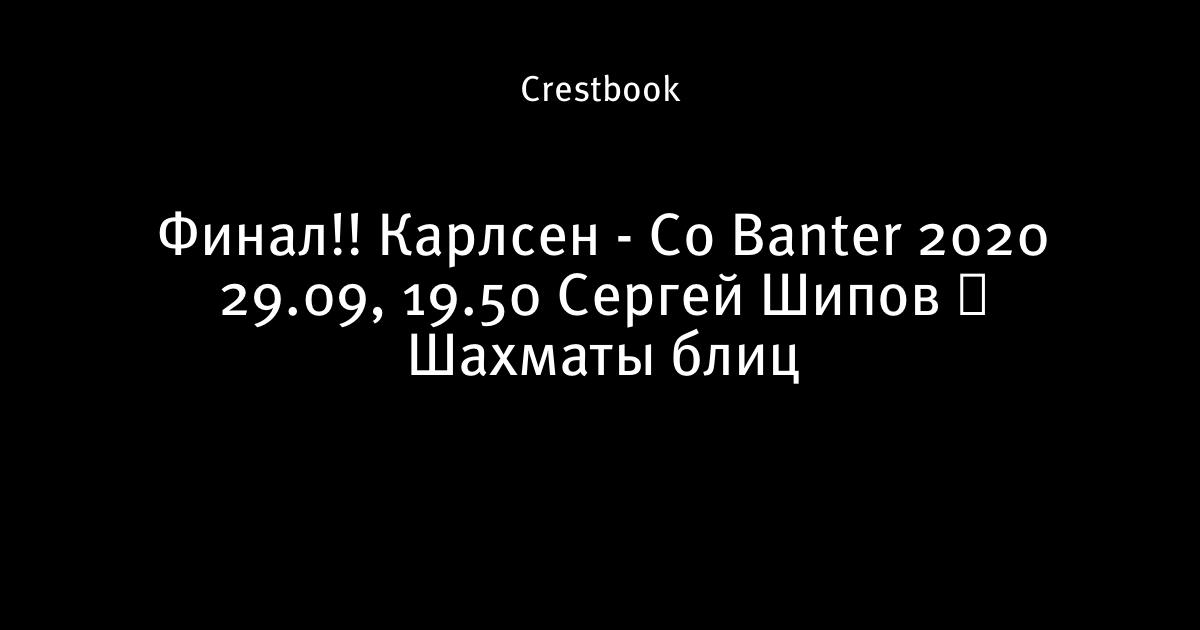 Финал!! Карлсен - Со 🏆 Banter 2020 ⏰ 29.09, 19.50 🎤 Сергей Шипов ♕ Шахматы блиц