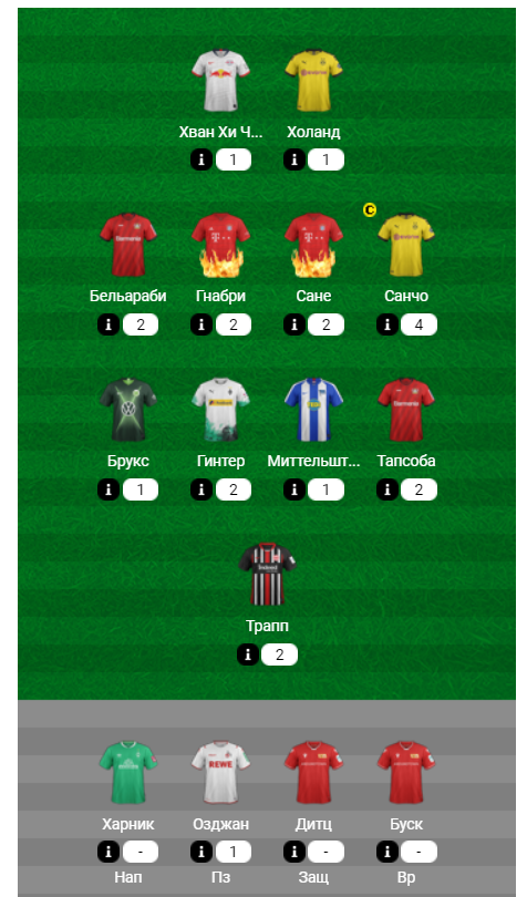 Очередной хороший с точки зрения выбора в состав матч. Защитникам мы конечно места не найдем, поскольку прогнозируем достаточно результативную игру. А вот в нападении мы вполне можем рассчитывать на голы от Вегорста (8.5) - форвард хозяев должен наконец открыть счет своим голам в сезоне и почему бы не в домашней встрече третьего тура. Калиджури (7.0) - полузащитник гостей и настоящий обидчик «Боруссии» из Дортмунда (11 очков гол+пас). Отличный выбор в состав. Хан (6.5) - выбор скорее на удачу. Довольно неплохо отыграл матч второго тура и имел шансы забить. Место в составе пожалуй получит и поэтому в качестве четвертого вполне может оказаться у вас в составе.