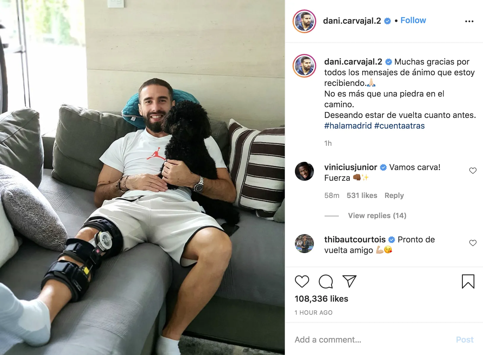 Дани Карвахаль поблагодарил болельщиков за поддержку и выразил надежду, что скоро вернется на поле