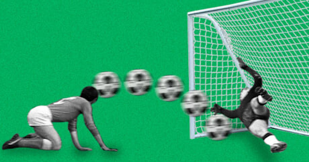 У меня даже возникают такие мысли: как нужно пробить, чтобы мяч хотя бы докатился до ворот и пересек линию? По методу, который описывает герой, у меня большие вопросы: разбежался, прыгнул… Скорее пенальти получится забить с места, но тоже вопрос, насколько у тебя накаченная шея.