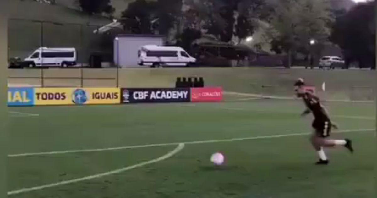 Новичок «Манчестер Юнайтед», левый защитник Алекс Теллес, обладает отличной техникой удара. Он показал это в расположении сборной Бразилии, удивив фанатов.