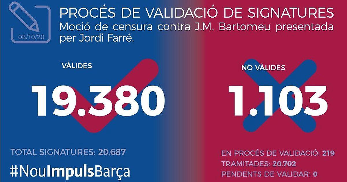 Из 20 483 подписей, проверенных Советом по вотуму руководству «Барселоны» за 9 дней, лишь 1 103 были забракованы