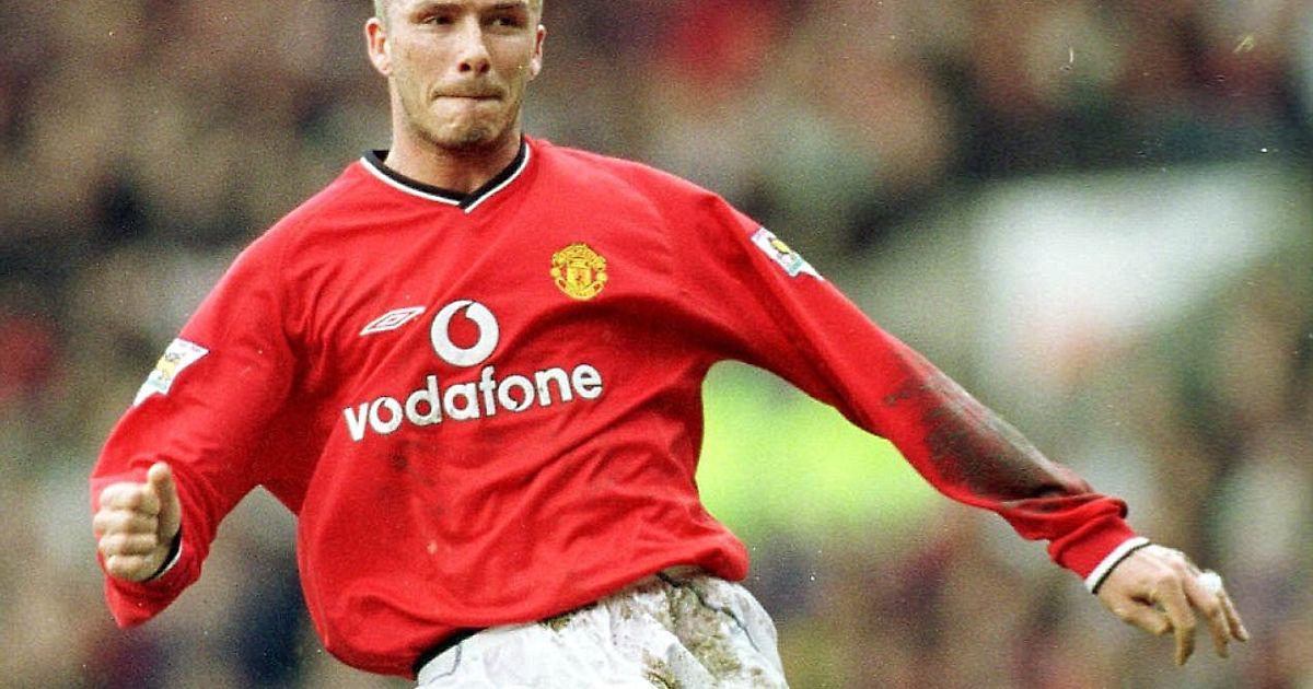 Дэвид Бекхэм красиво перекидывает мяч через вратаря «Вест Хэма» с угла штрафной площадки.