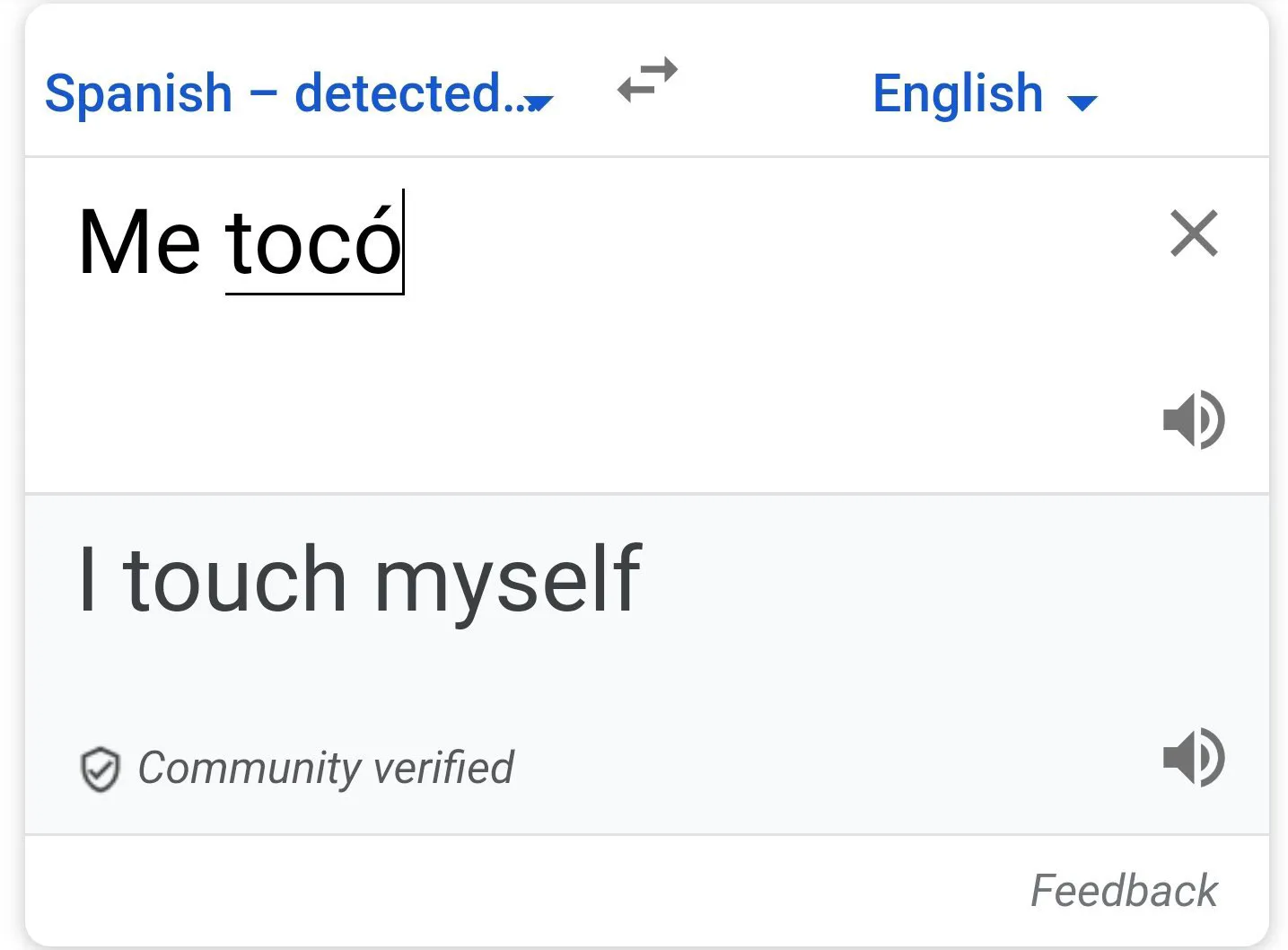 В Google это переводится как «Я прикасаюсь к себе» - это, вероятно, последнее, что можно сделать перед семейным ужином.