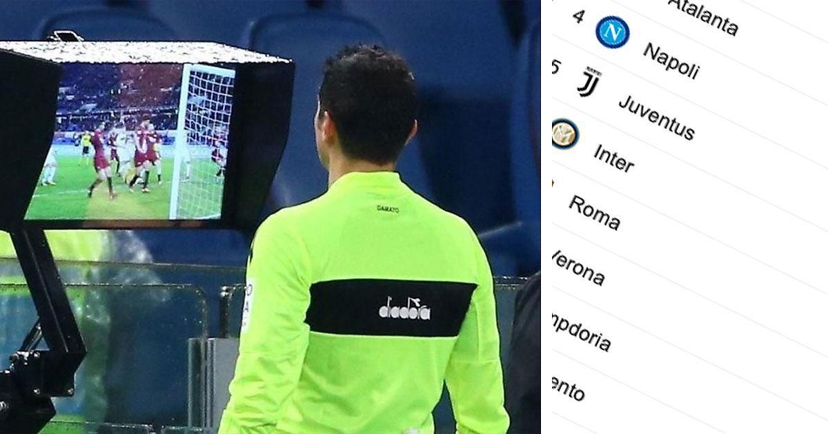 Calciomercato.it опубликовал текущую турнирную таблицу Серии А, в которой не учитывалось вмешательство VAR в игры чемпионата.