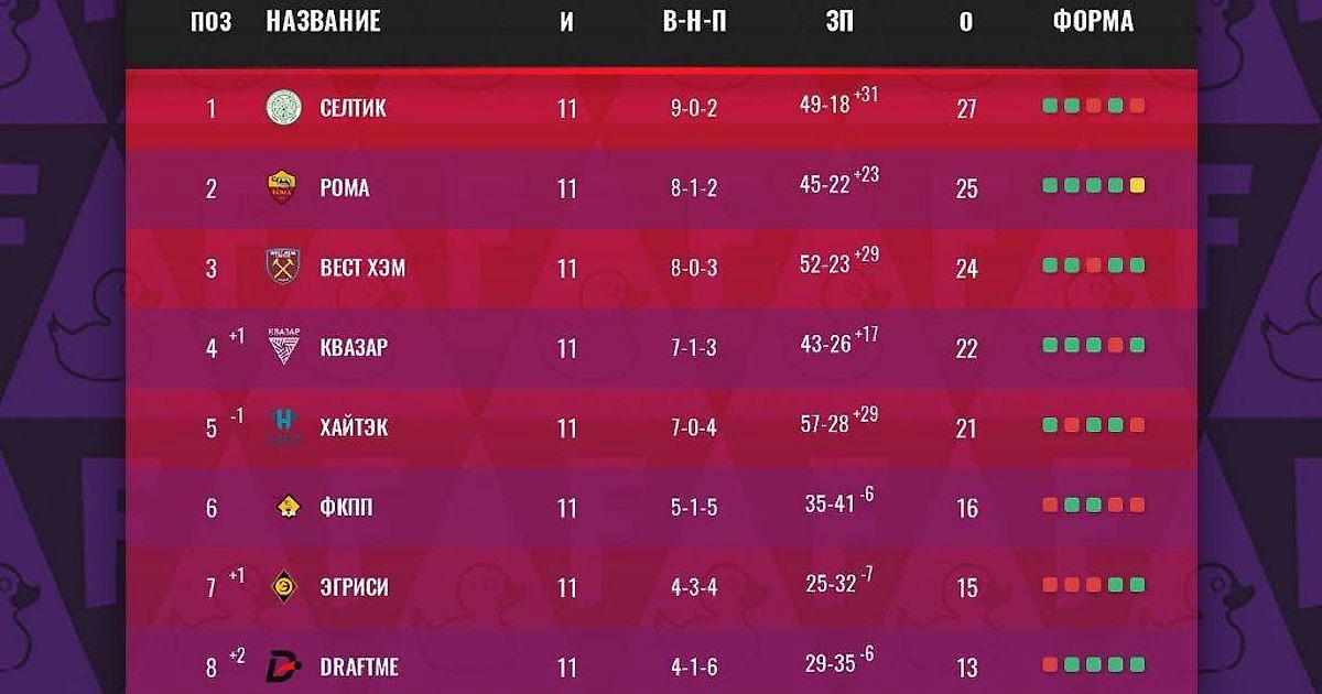 Обновленная таблица League F с учетом технического поражения «Селтика» в матче с Draftme.pro