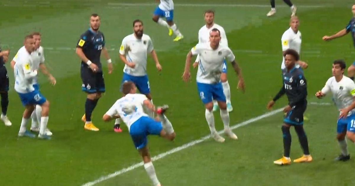 Эффектный прием стал голевым пасом на Даниила Лесового – динамовец обработал мяч и пробил по воротам. Мяч прошел между ног Маграсову, Ибрагиму Цаллагову и Николаю Заболотному. Красота!