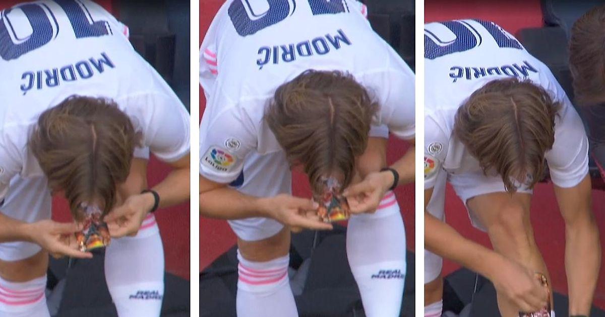 Модрич выполняет классический ритуал перед игрой и через несколько минут забивает в Класико