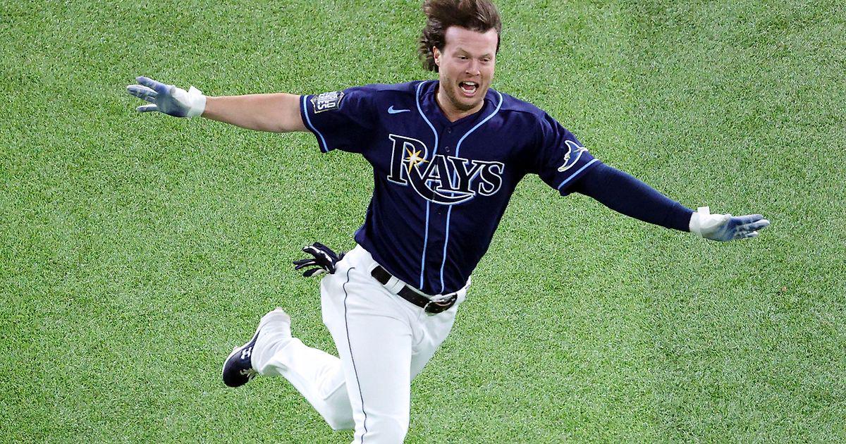 "Тампа-Бэй Рейс"-"Лос-Анджелес Доджерс" 8:7.В первом иннинге Джастин Тёрнер выбил хоум-ран (2).В 3 иннинге Кори Сигер выбил хоум-ран (2).В 4 иннинге Рэнди Арозарена выбил хоум-ран (2).В 5 иннинге Макс Манси выбил сингл и Кори Сигер снова увеличил отрыв гостей.Хозяева ответили хоум-раном (1) Хантера Ренфро.В 6 иннинге Энрике Эрнандес выбил дабл (10 и Уилл Смит прибежал в дом.Хозяева ответили хоум-раном (3) Брэндона Лоуи и забеганиями Рэнди Арозарены с Джи Ман Чоем.В 7 иннинге Джок Педерсон выбил сингл,а Кори Сигер и Джастин Тёрнер снова вывели гостей вперёд.Хозяева ответили хоум-раном (2) Кевина Кирмайера.В 8 иннинге Кори Сигер выбил сингл и Крис Тэйлор опять вывел гостей вперёд.В 9 иннинге Бретт Филлипс выбил сингл,а Кевин Кирмайер и Рэнди Арозарена приносят победу хозяевам.