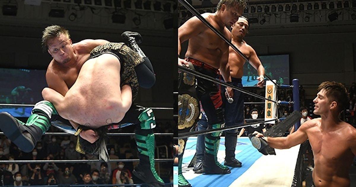 К чему я это всё сказал - да к тому, что сегодняшний мэйн-ивент за эти титулы снова показал тот самый золотой стандарт, который образовался пару месяцев. Причём всё вокруг было связано именно с Йоши-Хаши, для которого эти титулы стали самым первым титульным трофеем за 12 лет активной карьеры. Это привело к редким, но очень большим и культовым матчам - как во время турнира за эти титулы, так и в титульных защитах действующих чемпионов. И именно сегодняшний поединок пополнил этот список, так как оппонентами представителей CHAOS выступили Suzuki-gun - отчего в данном мэйн-ивенте были небольшие флэшбеки с тех самых сторилайнов с 2019 года: между Хаши и Сэйбром-мл. и тем более между Таичи и Томохиро Ишии (последний страдал из-за травмы левого колена и это подчёркивали во время матча), которые вспомнили о своей истории даже в недавно прошедшем турнире G1 Climax 30. Всё это, весь этот сторителлинг, основанный на недавнем прошлом между вышеуказанными бойцам, привёл к очень интересным стычкам вкупе с активной командной работой между оппонентами. И CHAOS, и Suzuki-gun ну никак не хотели уступать друг другу, что вылилось в весьма пронзительную драму в контексте того самого сторителлинга - это сильнее всего подчёркивалось от главного MVP матча Йоши-Хаши, который вёл отдельные боевые стычки не только с Сэйбром (вспоминая их небольшой фьюд в 2019 году за британское чемпионство RevPro в тяжёлом весе), но и небольшую историю с новичком Suzuki-gun ДОУКИ. Последний просто рвал и метал, стараясь не только унизить "Охотника", но также доказать свою собственную ценность в группировке великого "Короля" Минору Сузуки. Подобные акценты в сторителлинге матча + невероятно слаженная командная работа и нарастающий темп сделали мэйн-ивент одним из лучших командников за 2020 года, а если бы бой продлился бы ещё около 3-5 минут с таким же накалом страстей - его оценка была бы наивысшей, лично от меня, хотя 32 с половиной минуты это уже ох как немало.