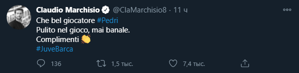 «Какой хороший игрок Педри. Он необычный», - написал Маркизио.