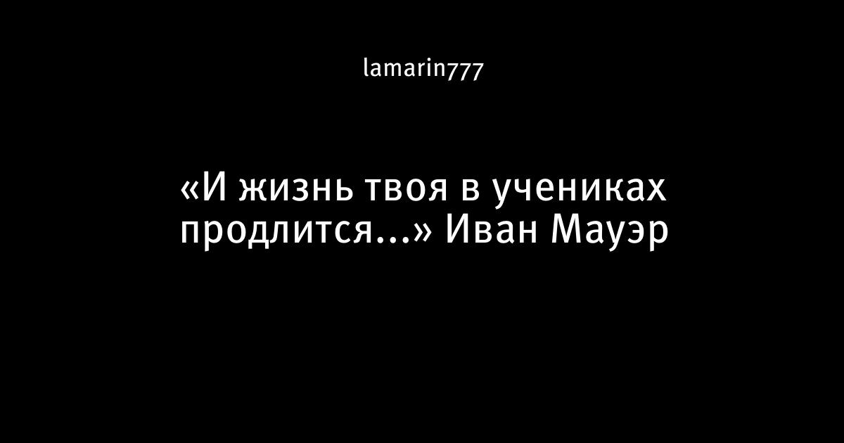 «И жизнь твоя в учениках продлится...» Иван Мауэр