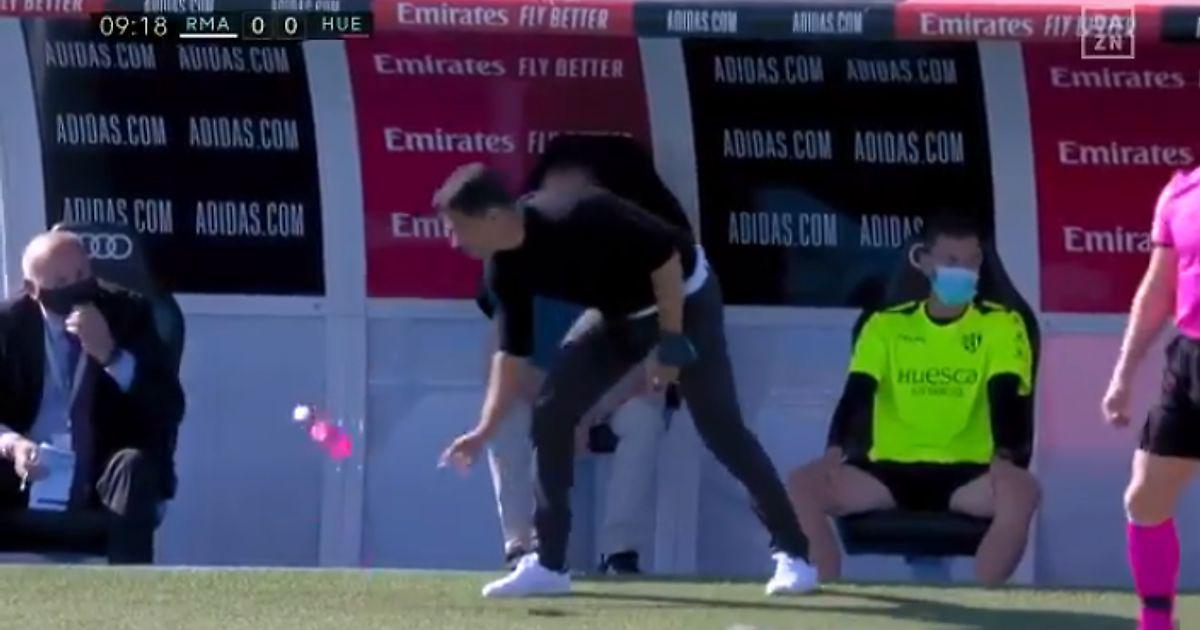 Главный тренер «Уэски» решил заняться переворачиванием бутылки во время матча с «Реалом», вместо просмотра игры