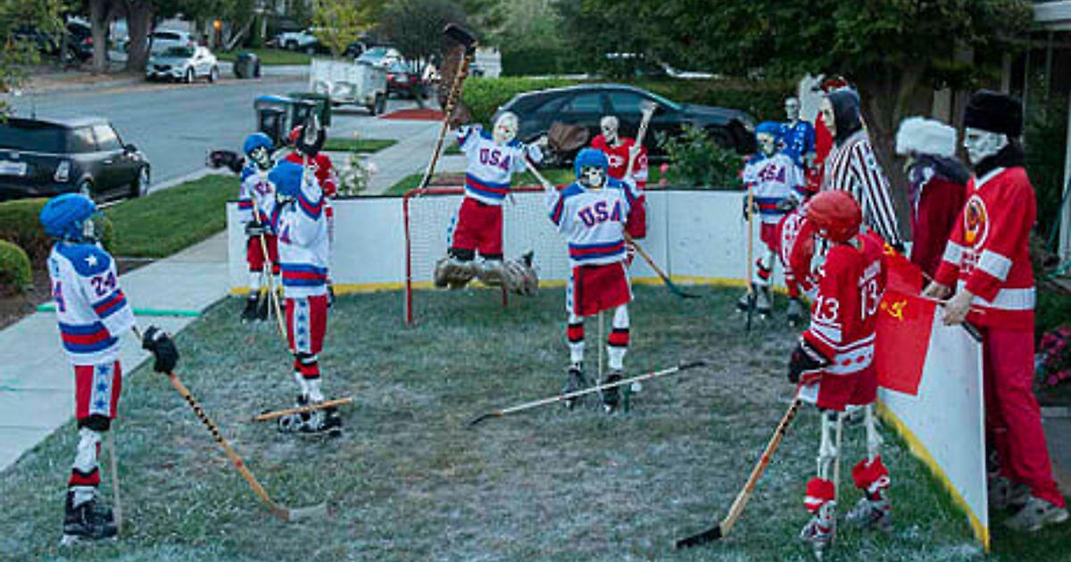 Хэллоуин-2020, несмотря на коронавирус, тоже подарил отличный хоккейный перфоманс. Фанатка «Сан-Хосе» Энн Эйкхорн воссоздала в своем дворе сцену из матча между сборными СССР и США на Олимпиаде в Лейк-Плэсиде, который завершился сенсационной победой американцев и вошел в историю под названием «Чудо на льду».