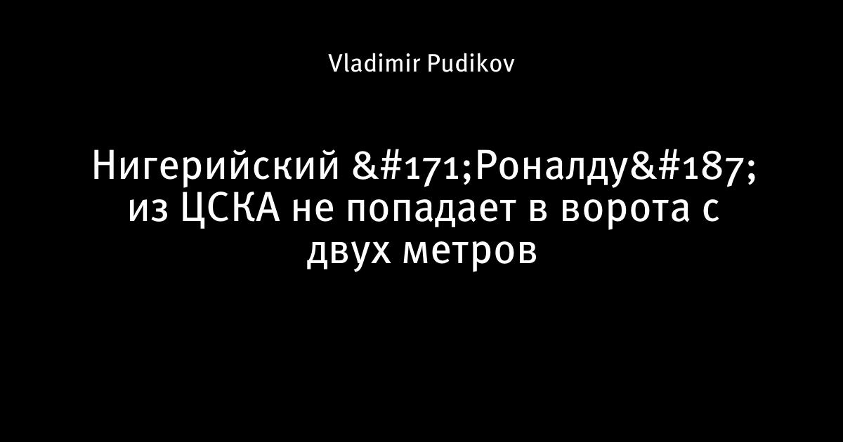 30 января 2012, 08:25 Нигерийский «Роналду» из ЦСКА не попадает в ворота с двух метров Автор Vladimir Pudikov Этот пост опубликован в блоге на Трибуне Sports.ru. Присоединяйтесь к крупнейшему сообществу спортивных болельщиков! Другие посты блога Телевизор 3.0 видео