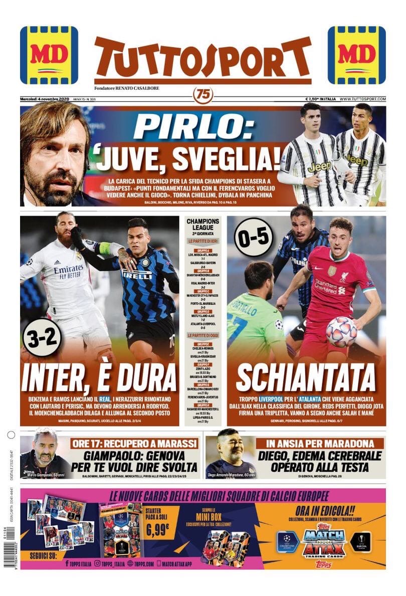 Поражение «Интера» от «Реала», разгром «Аталанты» «Ливерпулем», а также сегодняшние матчи «Юве» и «Лацио» в Лиге Чемпионов – в утреннем обзоре заголовков итальянских спортивных изданий в блоге «В гостях у Кальчо».