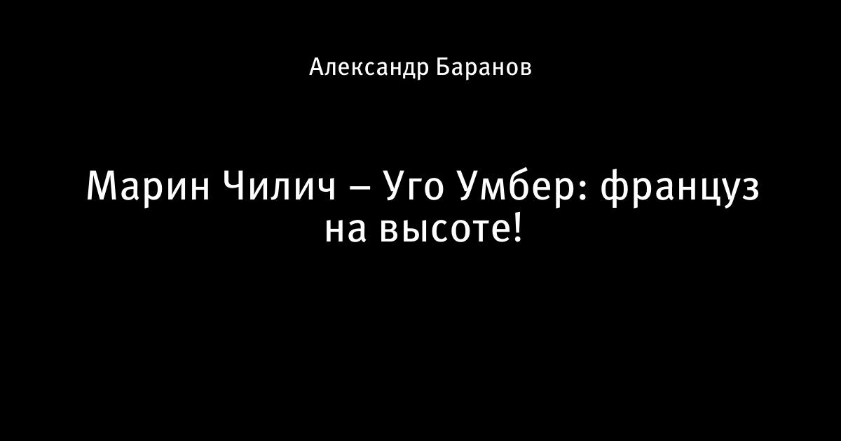 Прогноз. Теннисисты ни разу не играли друг против друга, но скажем так, будучи эта встреча в прошлом сезоне, вряд ли бы Уго имел такое преимущество над топ-соперником Чиличем. Но сейчас француз фаворит, и вполне заслужено. Я думаю, что в предстоящей встрече сюрпризов не будет и в четвертьфинале мы увидим Умбера. Ставка – П2.