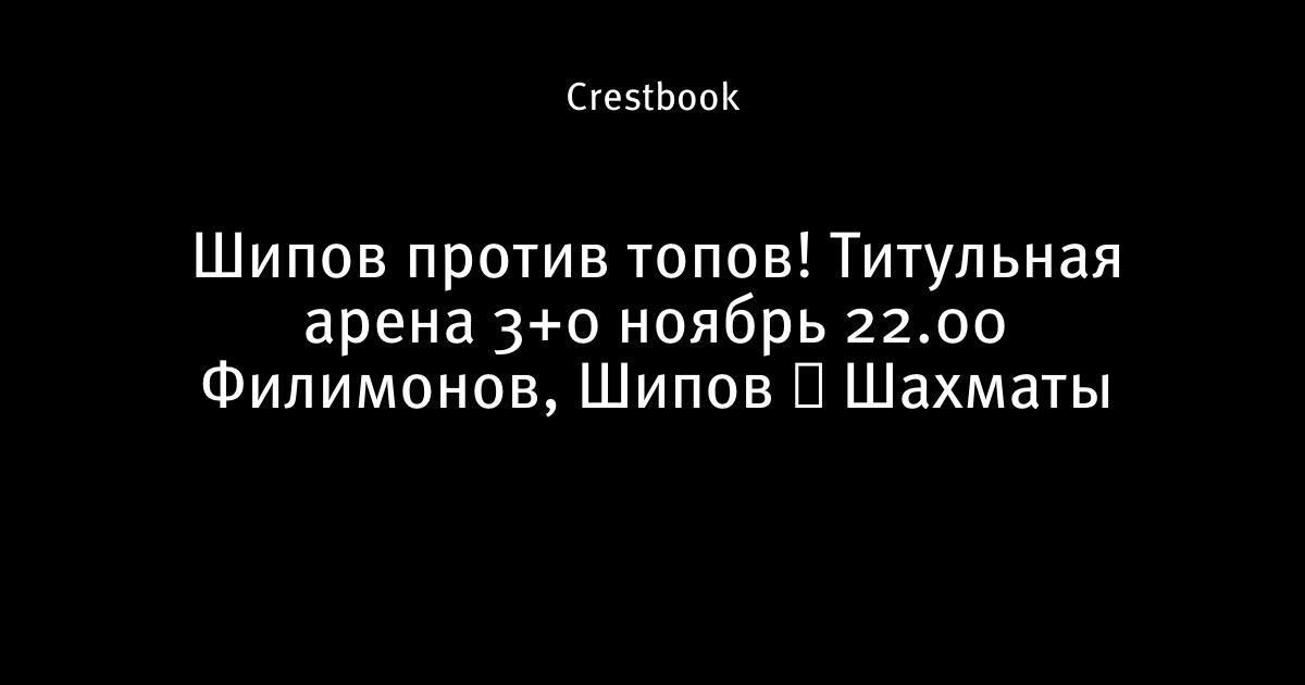 Шипов против топов! Титульная арена 3+0 ноябрь ⏰ 22.00 🎤 Филимонов, Шипов ♕ Шахматы