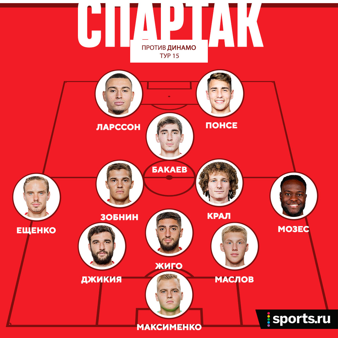 С каким счетом закончится матч, если «Спартак» сыграет таким составом?