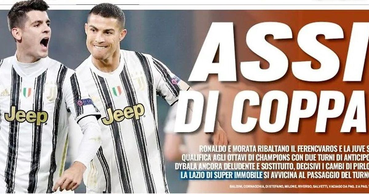 Камбэк «Юве» с «Ференцварошем» благодаря Роналду и Морате, победа «Лацио» над «Зенитом», а также сегодняшние матчи «Интера» с «Реалом» и «Аталанты» с «Ливерпулем» – в утреннем обзоре заголовков итальянских спортивных изданий в блоге «В гостях у Кальчо».