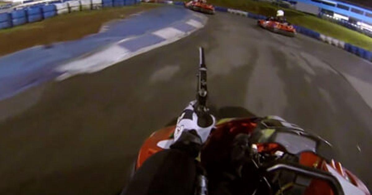 Оказалось, Лукас придумал и заснял процесс еще в 2016-м с друзьями на картинговом треке «Гранжа Вьянна» в Сан-Паулу в честь собственного дня рождения. Суть такова: вы с друзьями соревнуетесь на картах, а когда тебя кто-то обгоняет, ты расстраиваешься – и стреляешь наглецу в спину. Или в визор. Или куда угодно.