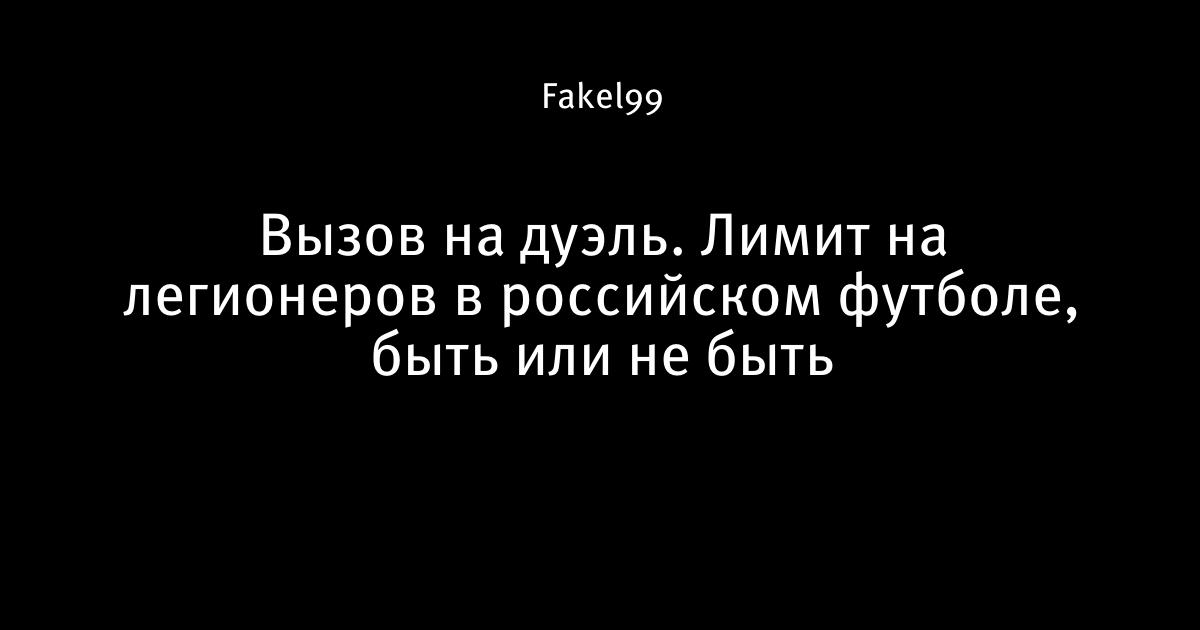 Вызов на дуэль. Лимит на легионеров в российском футболе, быть или не быть