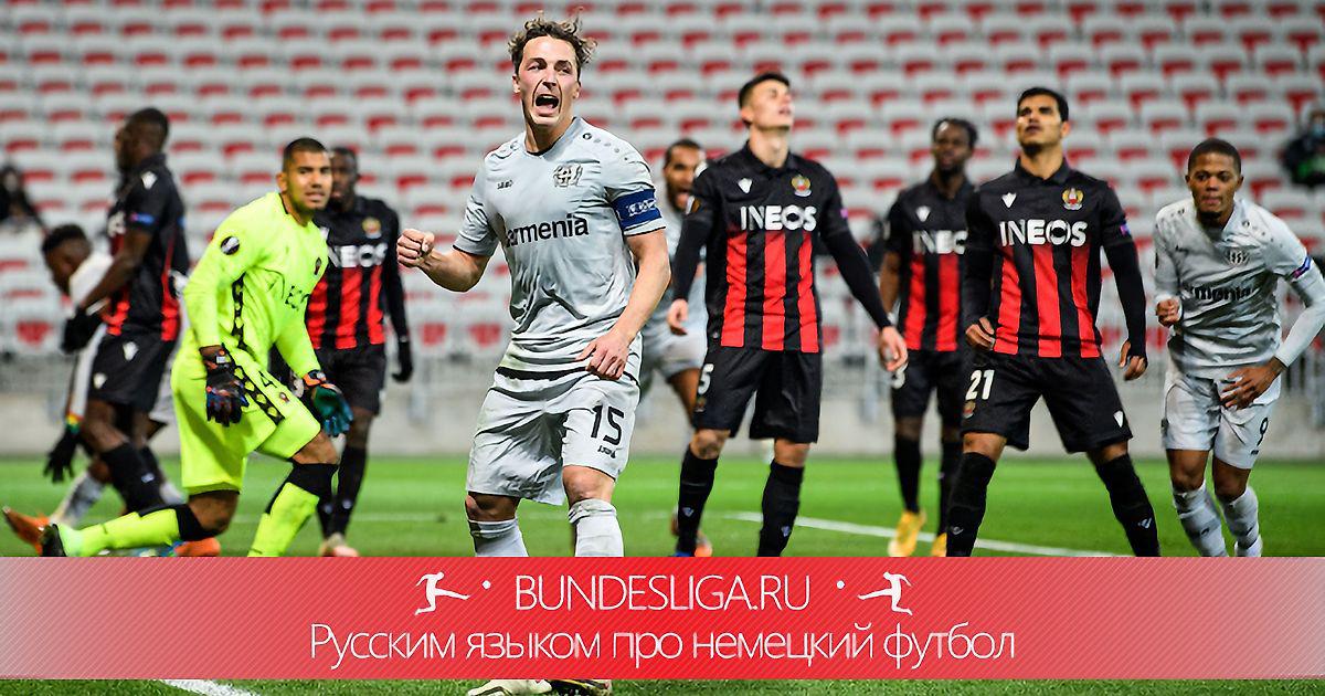 Очередной безумный матч «Байера» с «Ниццей», — но в этот раз скромнее по счету, — который по сути для обеих команд ничего не решал. Если только вопрос первой строчки для Леверкузена, который борется за нее с чудо-командой из Чехии. Да, у «Ниццы» еще были математические шансы побороться с «Байером» за вторую строчку, но было маловероятно, что «орлята» смогут забить для этого необходимые четыре мяча, самостоятельно при этом не пропустив.