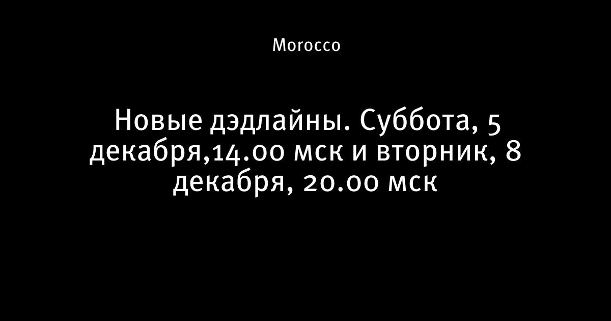 Новые дэдлайны. Суббота, 5 декабря,14.00 мск и вторник, 8 декабря, 20.00 мск