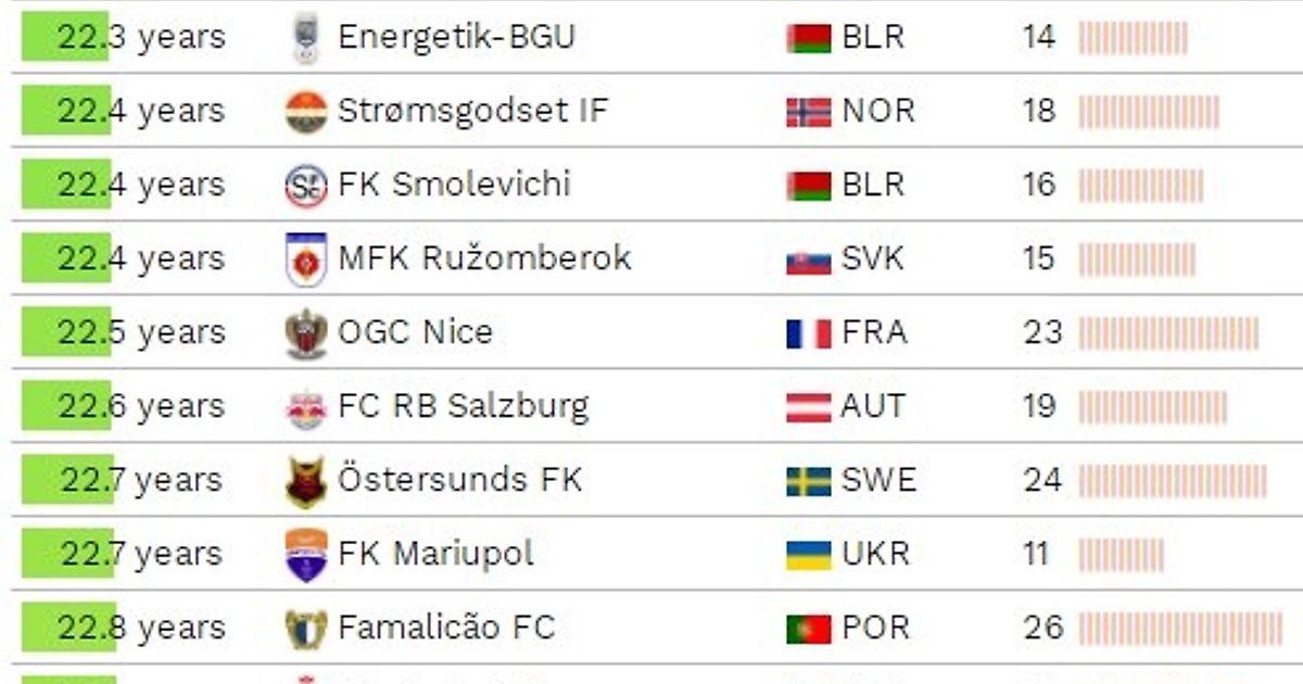 Первое место в рейтинге занял московский ЦСКА. Средний возраст шестнадцати футболистов, которых покупали «армейцы» составляет 21,4 года. На втором месте располагается словацкий ДАК, тройку замыкает «Херенвен».