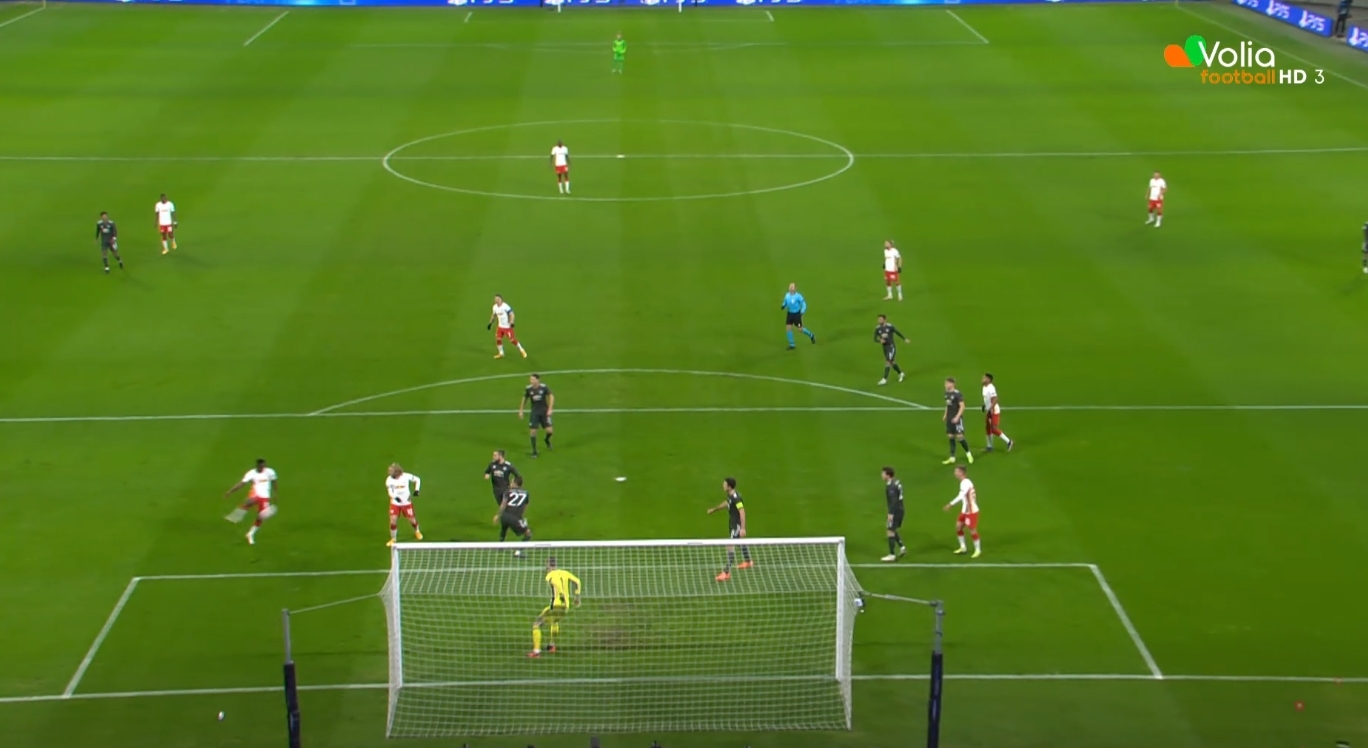 Оставили полузащитника Айдару совсем одного в штрафной.