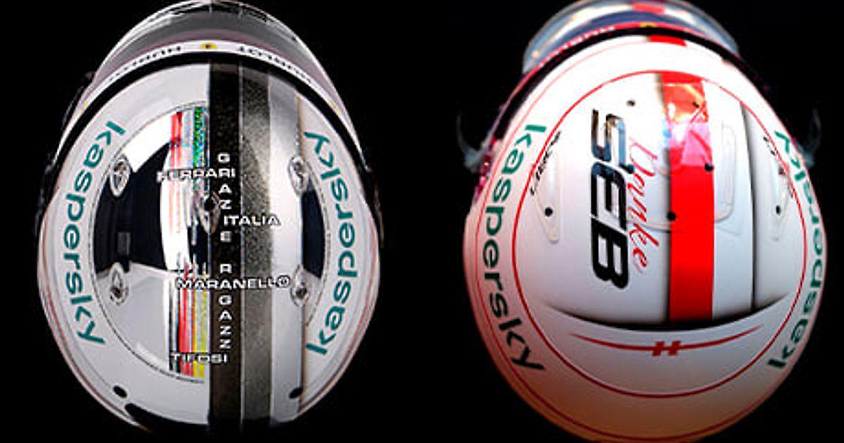 Себ сохранил привычную структуру своей ливреи с полосами на верхней части и огромными жеребцом «Феррари» и пятеркой на краях. Для ночных гонок Феттель выбирает блестящие шлемы – под огнями прожекторов хром будет смотреться здорово.