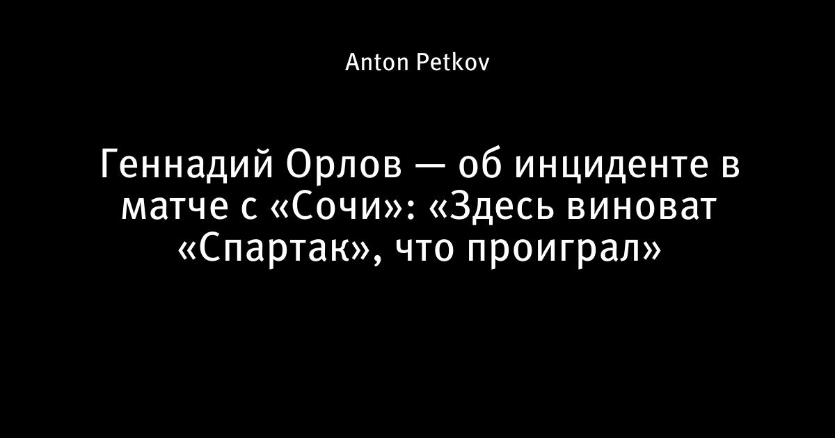 Геннадий Орлов — об инциденте в матче с «Сочи»: «Здесь виноват «Спартак», что проиграл»
