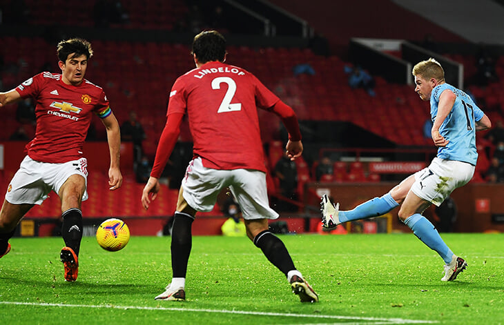 Зависимость «Сити» от КДБ бросалась в глаза еще в прошлом сезоне. Сейчас – достигла максимума за все время Гвардиолы в клубе. Майкл Кокс на днях сказал, что вообще не помнит, чтобы в командах Пепа настолько выделялся один игрок – а ведь он работал с Месси в «Барселоне». В дерби это снова проявилось. По данным Understat, «Сити» создал моментов на 1,28 xG. Из них 0,93 xG – моменты, в которых Де Брюйне либо бил сам, либо пасовал под удар.