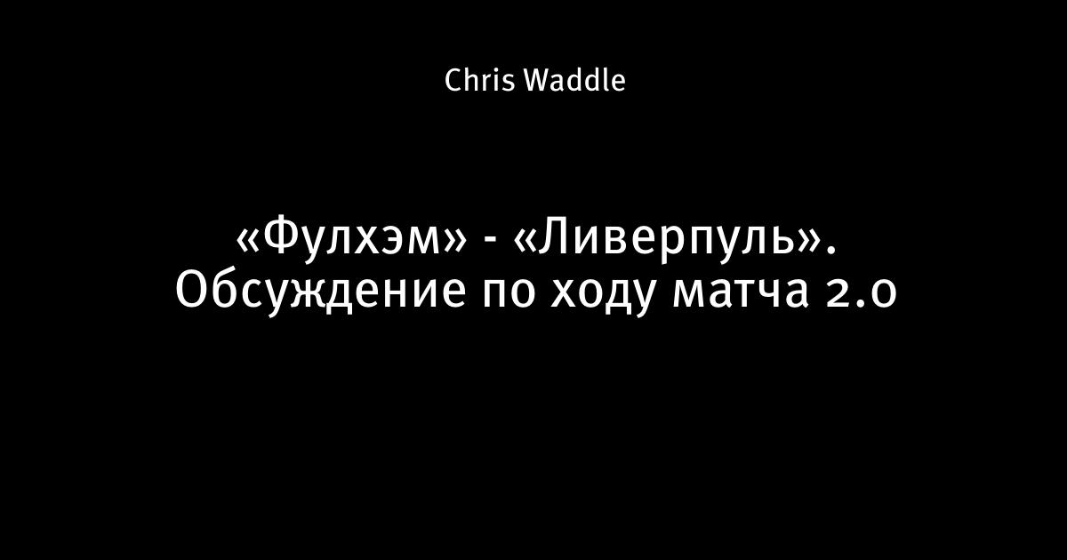 13 декабря 2020, 18:34 «Фулхэм» - «Ливерпуль». Обсуждение по ходу матча 2.0 Этот пост написан пользователем Sports.ru, начать писать может каждый болельщик (сделать это можно здесь). Автор Chris Waddle Этот пост опубликован в блоге на Трибуне Sports.ru. Присоединяйтесь к крупнейшему сообществу спортивных болельщиков! Другие посты блога Глядя с Ройял Лайвер Билдинг премьер-лига Англия Ливерпуль