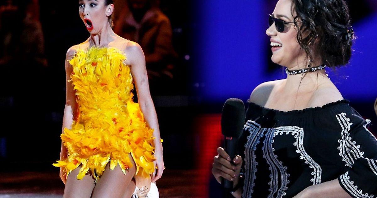 Алина Загитова подойдя к паре Соловьев-Бузова сказала Бузовой буквально следующее: "ты сегодня была ну прямо чудо в перьях". Реакция на сомнительный комплимент была примерно такой: