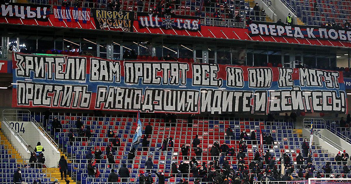 Сегодня исторический вечер для ЦСКА – в начале матча с «Уралом» болельщики впервые публично выступили против Гончаренко. Да, их было двое, но они, стоя на центральной трибуне, держали простыню с чёрными буквами: «Ганчаренко, в отставку». Революционно и непривычно для спокойного ЦСКА, где даже фанатская трибуна не выступает против кого-то одного, а направляет посыл на команду целиком: «Давайте играть» + «Бейтесь».