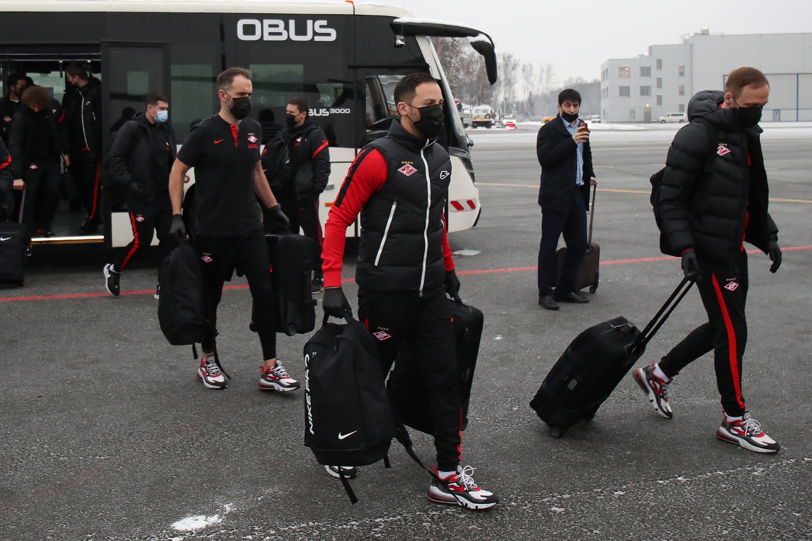 Сегодня утром красно-белые провели занятие на тренировочной базе около «Открытие Арены», а затем направились в аэропорт Шереметьево.