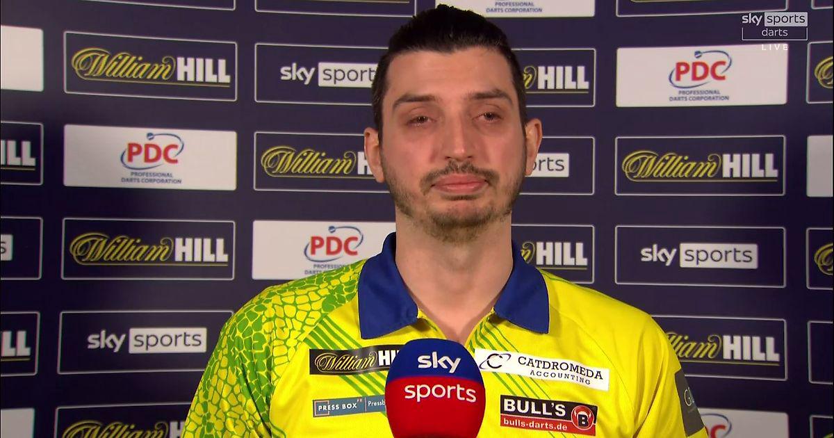 Diogo Portela is in tears as he defeats Steve Beaton in straight sets on the Ally Pally stage and he's into the second round!