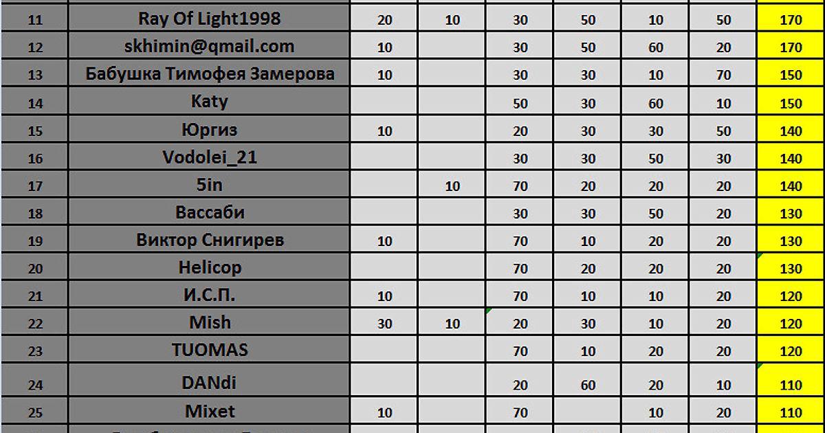 Ну и конечно же итоговая таблица, где у нас сменился лидер.